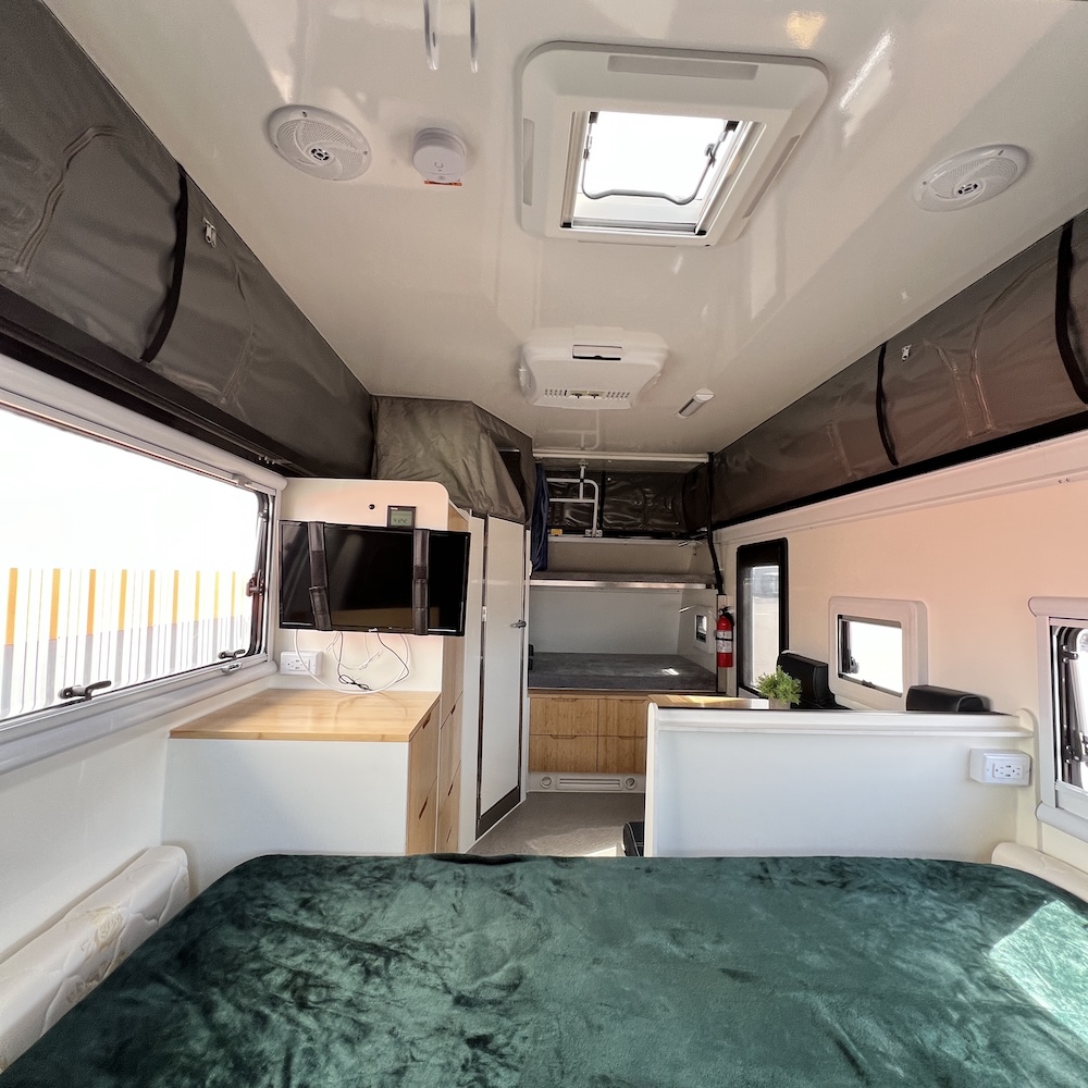 - Serious Solar & Battery: Forget generators! A roof-mounted 300-watt solar array feeds 405Ah of lithium batteries.