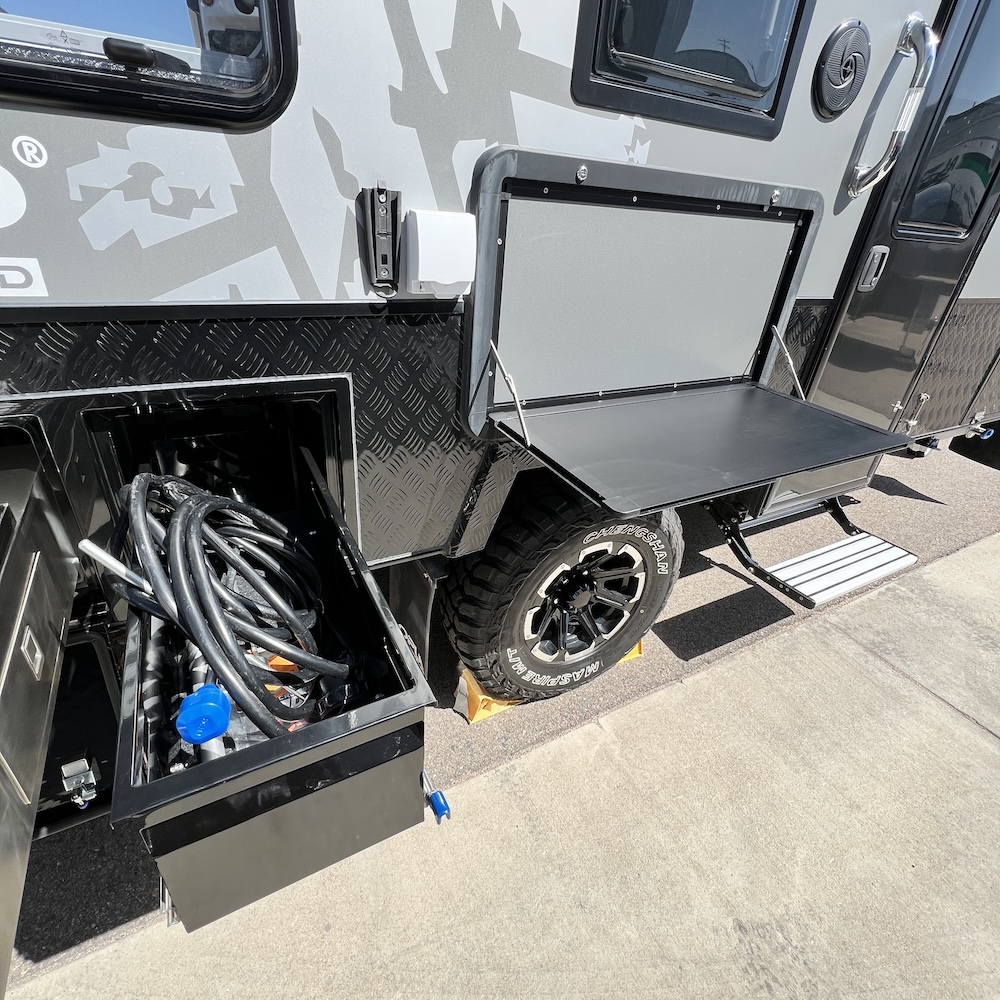 - Trail-Dominating Chassis: Equipped with the re-engineered suspension, this caravan handles rough tracks and corrugated roads like a champion, soaking up the impact to protect your gear.