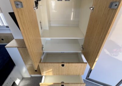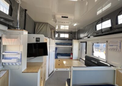 - Two bunks with Mattresses – Top bunk: 80” x 33”, Lower bunk: 80” x 45”