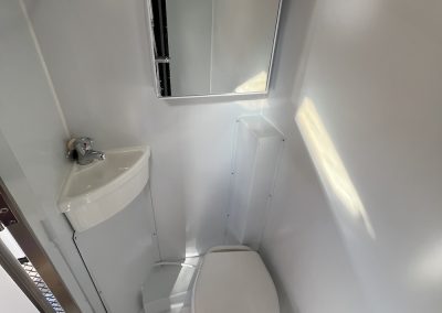 - Indoor Bathroom With Shower, Sink & Flush Toilet