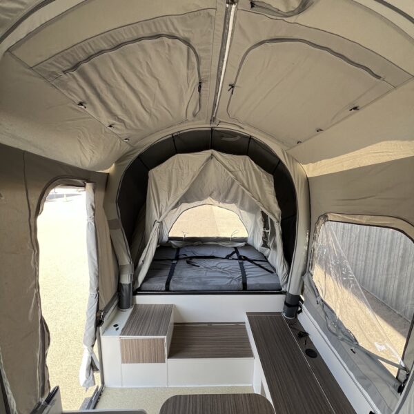 This is NOT your average popup trailer. With the OPUS OP4, you can go where other trailers can’t. It is designed for serious off-road exploration, featuring a durable all-terrain chassis and a sophisticated independent coil suspension system that smooths out the bumps and keeps you in control. Paired with new aggressive off-road tires, this trailer is your ticket to untouched landscapes and unforgettable experiences.
