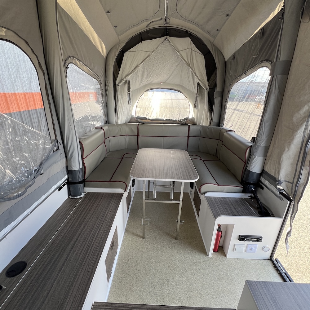 This is NOT your average popup trailer. With the OPUS OP4, you can go where other trailers can’t. It is designed for serious off-road exploration, featuring a durable all-terrain chassis and a sophisticated independent coil suspension system that smooths out the bumps and keeps you in control. Paired with new aggressive off-road tires, this trailer is your ticket to untouched landscapes and unforgettable experiences.