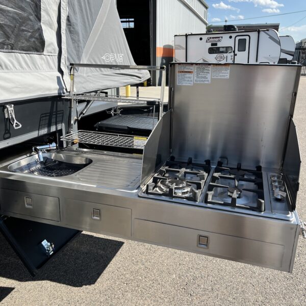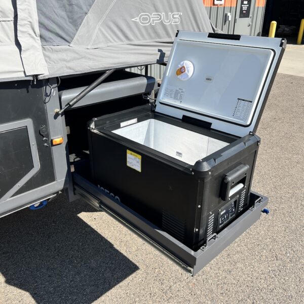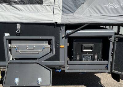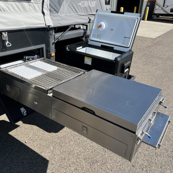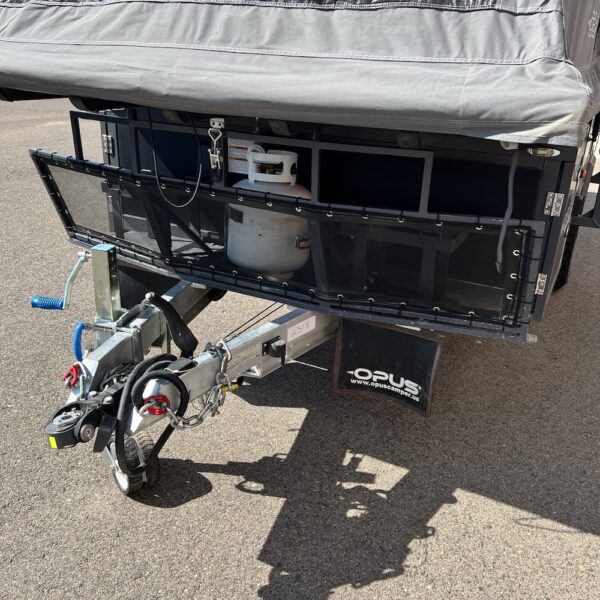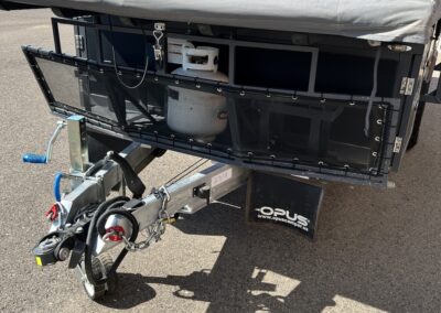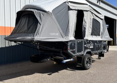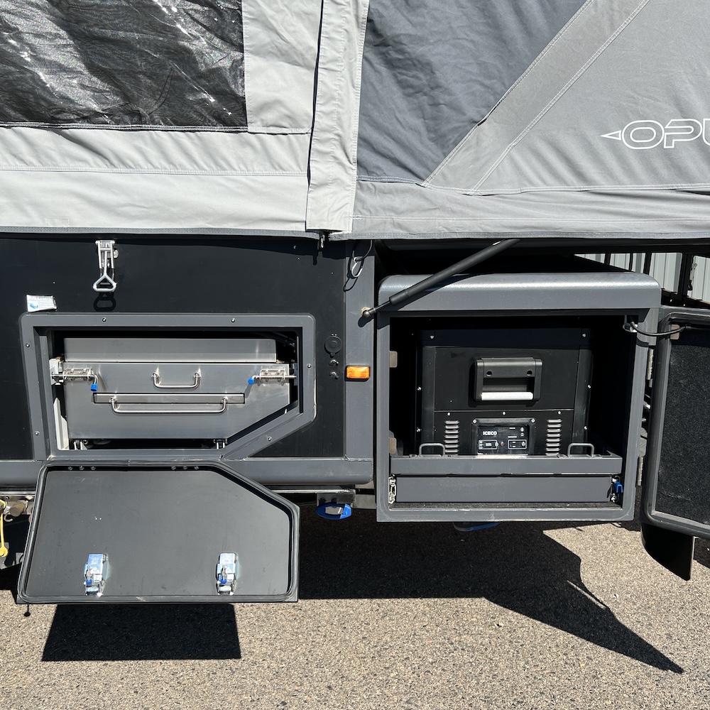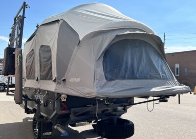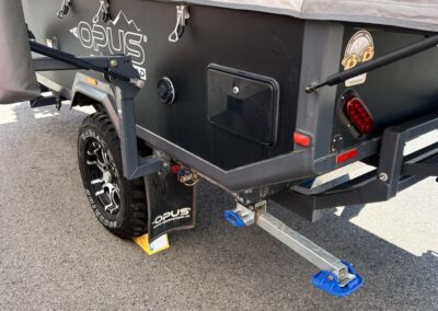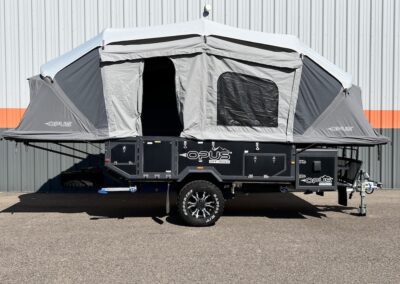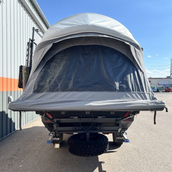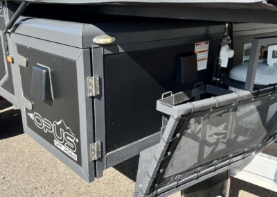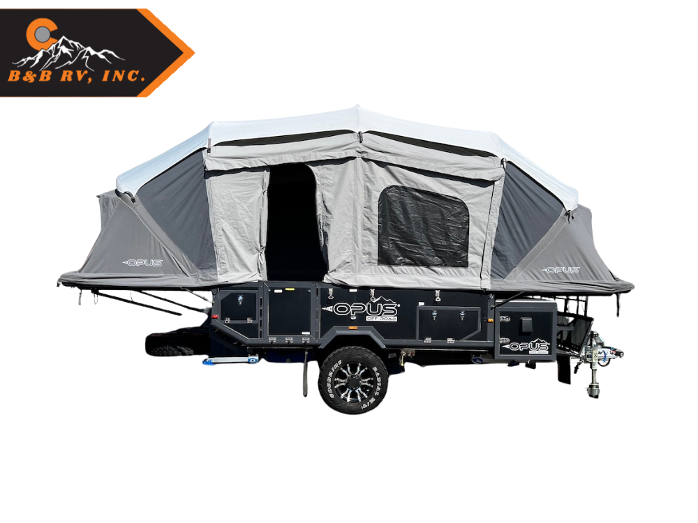 Explore off-grid with this well-maintained newer year model Opus OP4 with the lithium upgrade. The OP4 is built for rugged terrain with the independent trailing arm suspension with dual shock absorbers, galvanized steel chassis, dual shocks, coil springs, DO35 articulating hitch and all-terrain tires. The patented AIR Tent Technology inflates the tent with the push of a button. No poles on this updated popup!