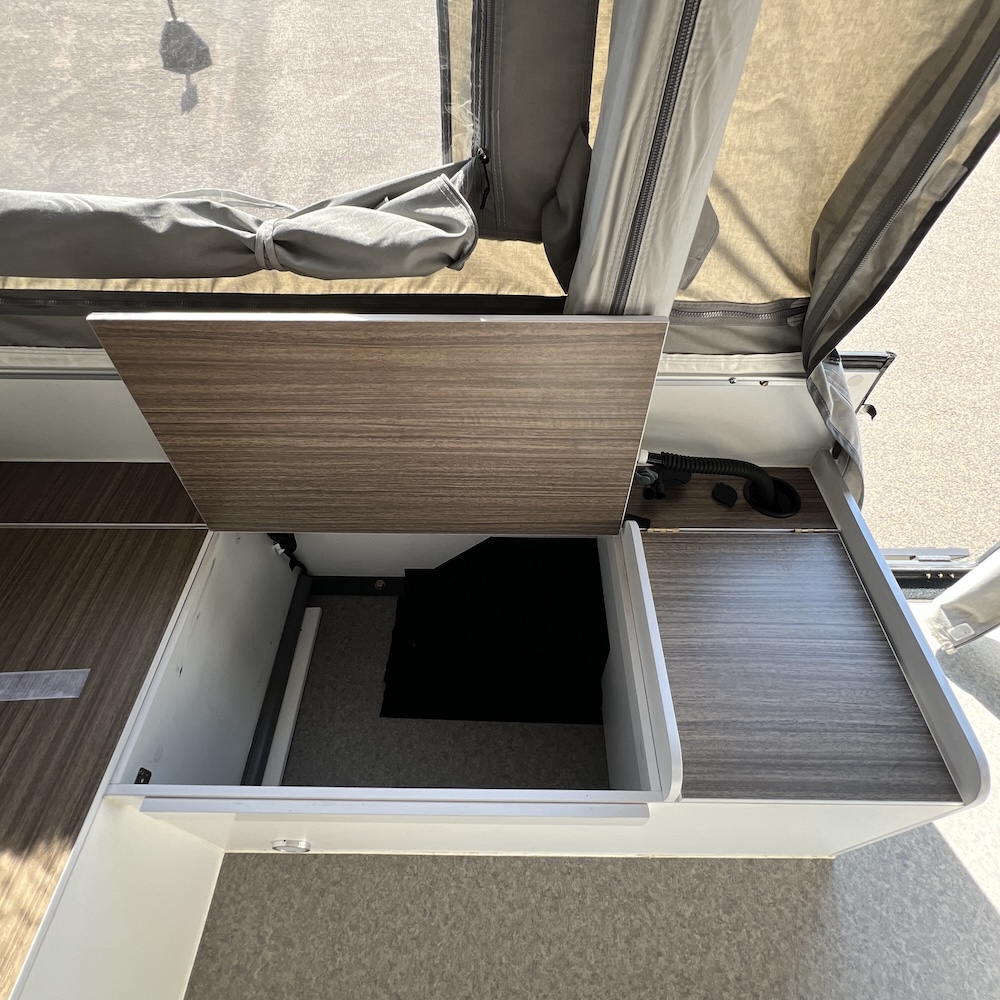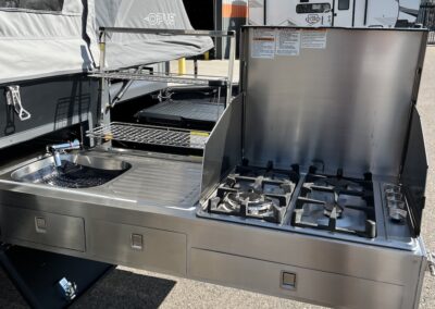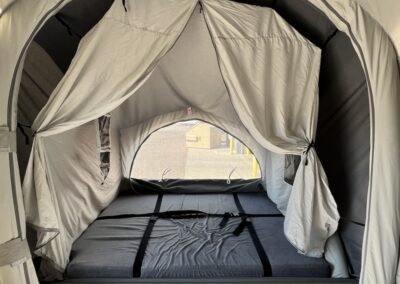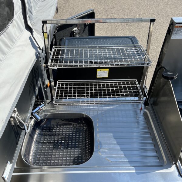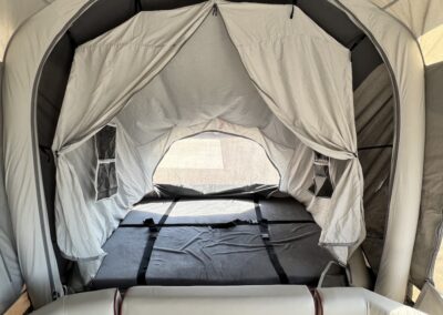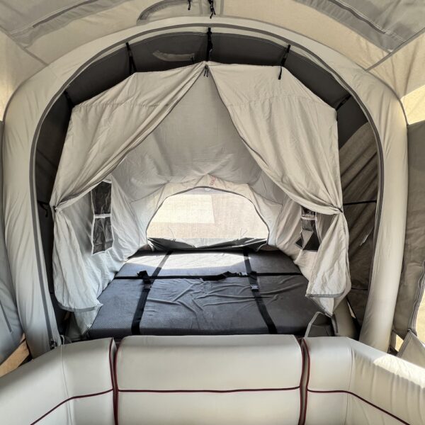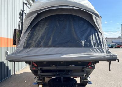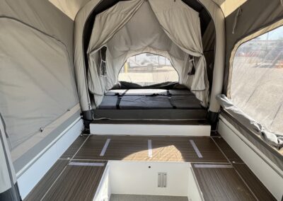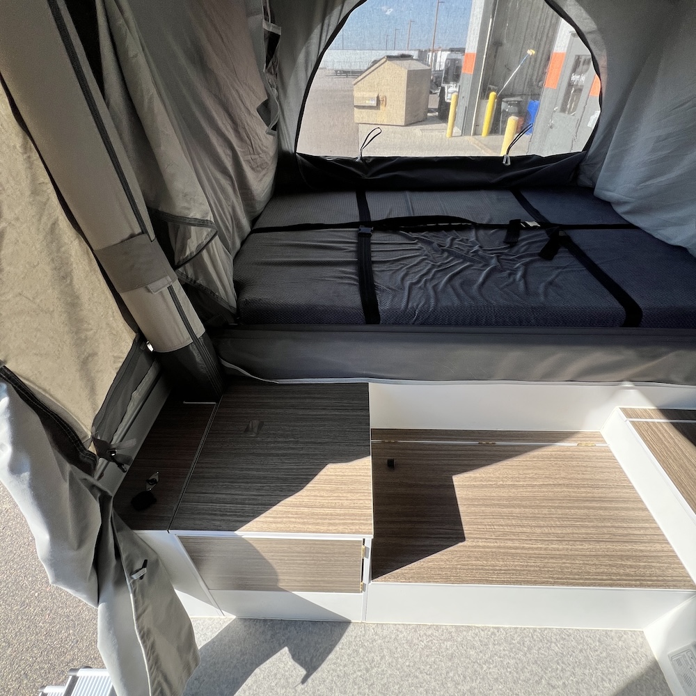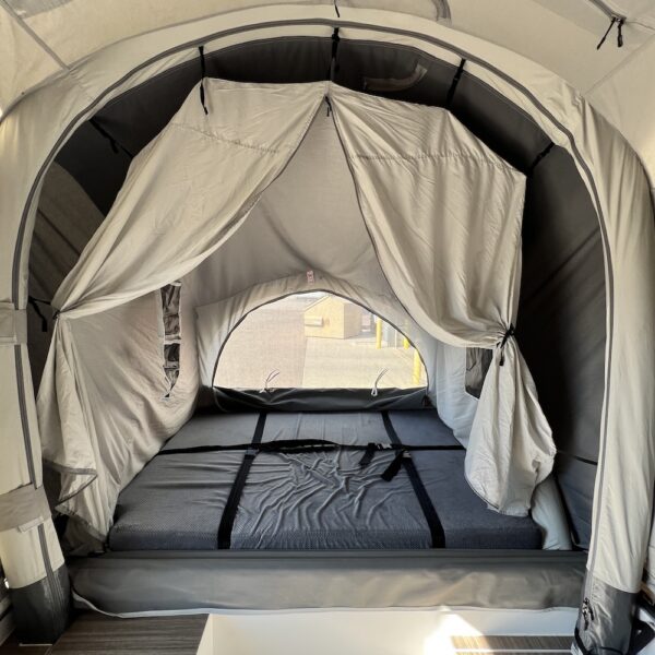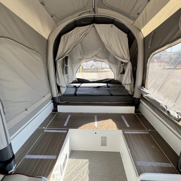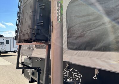 Explore off-grid with this well-maintained newer year model Opus OP4 with the lithium upgrade. The OP4 is built for rugged terrain with the independent trailing arm suspension with dual shock absorbers, galvanized steel chassis, dual shocks, coil springs, DO35 articulating hitch and all-terrain tires. The patented AIR Tent Technology inflates the tent with the push of a button. No poles on this updated popup!