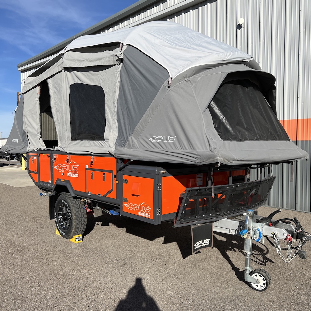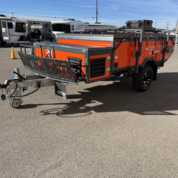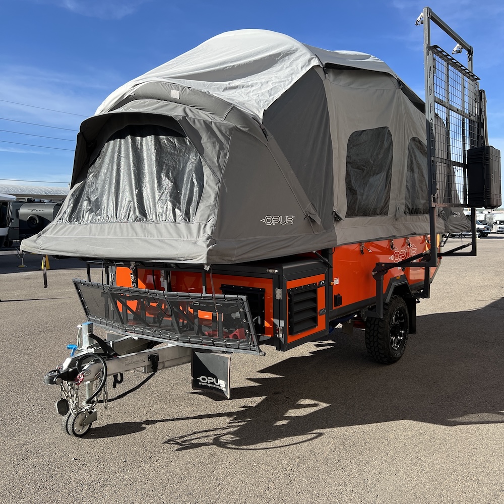 Check out this used 2024 OPUS OP4 in orange—a rugged off-road camper trailer built for adventure with the comfort features you want. This unit is equipped with an air conditioner to keep you cool on hot camping trips, plus OPUS’ quick and easy setup design for stress-free weekends away. The 2 lithium batteries and portable solar panel are included to keep you off-grid longer.  If you’re searching for a used OPUS OP4 for sale, this one is ready to hit the road and take your camping to the next level.