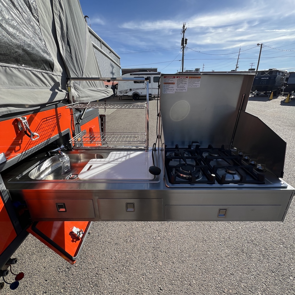 • Slide out Kitchen with Stove & Sink