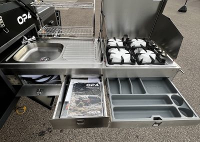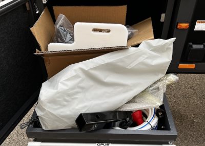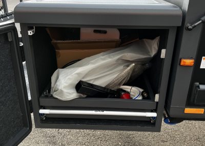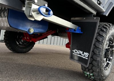 This camper is equipped with a comprehensive off-road package featuring an independent trailing arm suspension with dual shocks and coil springs on each wheel. This advanced system provides exceptional stability and ground clearance, allowing you to navigate uneven trails with confidence. The DO35 articulating hitch ensures a smooth and secure connection, even on the most difficult terrain, while the front rock guard protects your camper from flying debris.