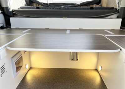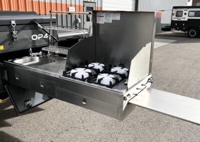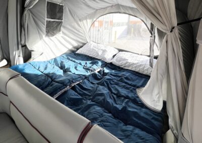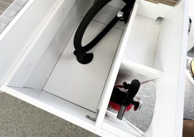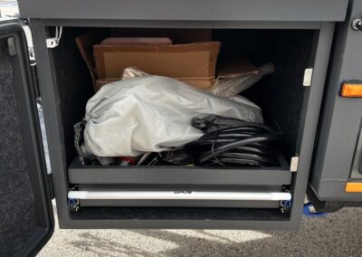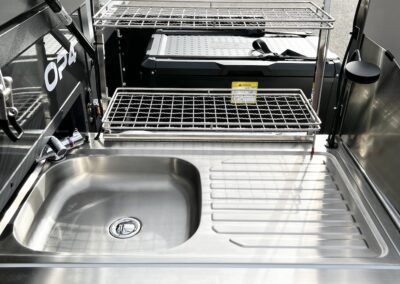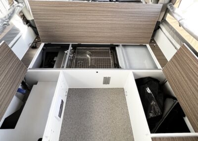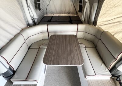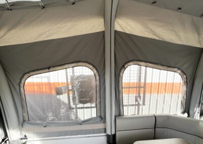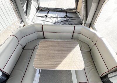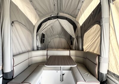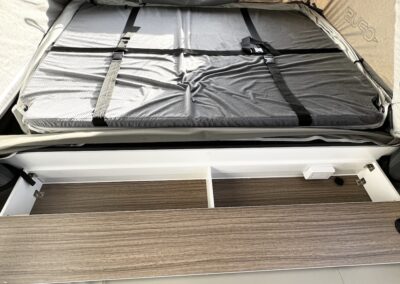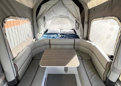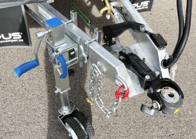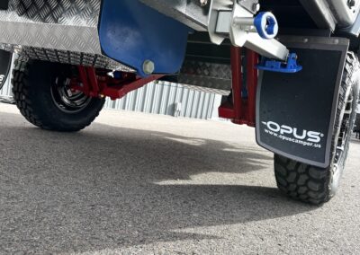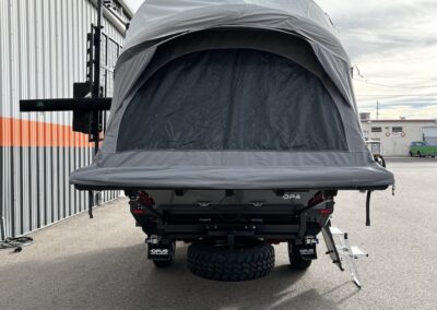 This camper is equipped with a comprehensive off-road package featuring an independent trailing arm suspension with dual shocks and coil springs on each wheel. This advanced system provides exceptional stability and ground clearance, allowing you to navigate uneven trails with confidence. The DO35 articulating hitch ensures a smooth and secure connection, even on the most difficult terrain, while the front rock guard protects your camper from flying debris.