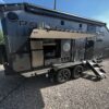 A MorRyde Huck-Rivot aluminum frame, adjustable air ride suspension, TransCore thermoplastic composite structure, and wood-free design are all used to produce the strongest, long-lasting overland trailer on the market today. In this Pause XC20.2 floor plan, you will enjoy your time cooking in the great outdoors with the deluxe outside kitchen. With a 4.5 CF Refer, a microwave, sink, a grill and griddle combination, and a pantry, you will have everything you need for a large meal. Furthermore, with the Palomino Pause XC20.2 2023. you will be granted a large storage room in the back of the coach and a lockable storage area behind your entertainment center wall. Full-size queen bed in the front with shirt closets and outlets on both sides. A 600-watt Viktron Solar package with 540-watt Battleborn Lithium batteries, a Viktron 3000-watt inverter, and 76 gallons of fresh water means you can enjoy the great outdoors even longer!!