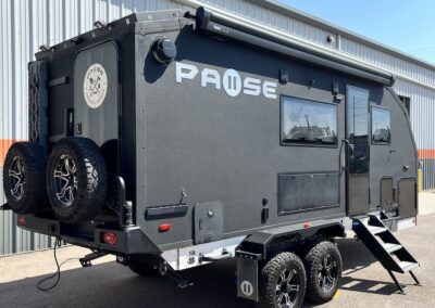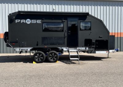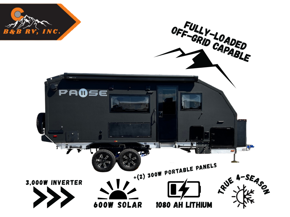 The Pause XC20.3 is a blacked out beast with all the bells and whistles to satisfy the overlander that wants the ruggedness to go anywhere and the lithium and solar upgrades to make it possible.