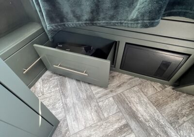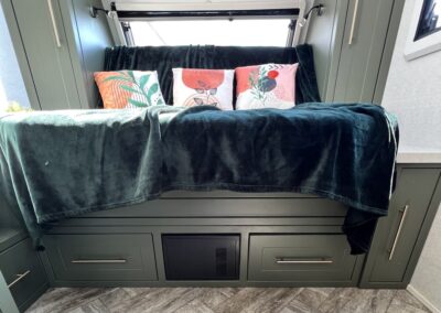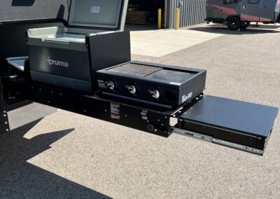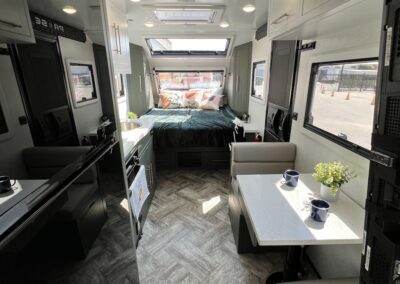 A MorRyde Huck-Rivot aluminum frame, adjustable air ride suspension, TransCore thermoplastic composite structure, and wood-free design are all used to produce the strongest, long-lasting overland trailer on the market today. A Victron Solar package including 1080ah Battleborn Lithium batteries, a Victron 3000-watt inverter, 600 watts of roof solar plus 2 portable panels and 76 gallons of fresh water means you can enjoy the great outdoors even longer!!