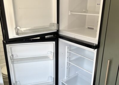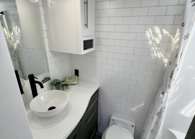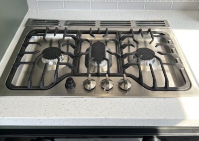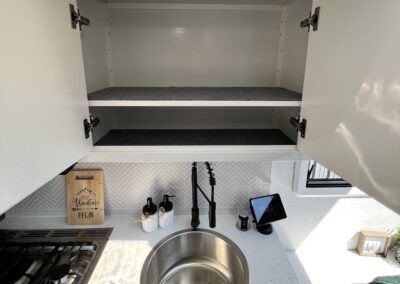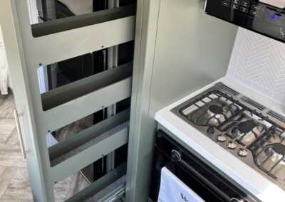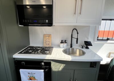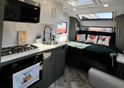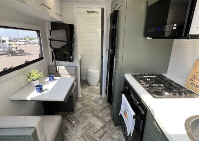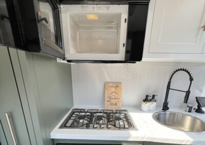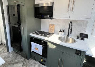 - Interior Kitchen w/ Over-Range Microwave, 12v Fridge/Freezer, 3-Burner Stainless Steel Cooktop w/ Built-In Oven