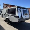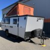 This gently used unit features the Overland Edition which features an axle-less suspension, 3″ of increased ground clearance, 16″ alloy wheels with all-terrain tires and a lock-n-roll hitch allowing you to explore more.