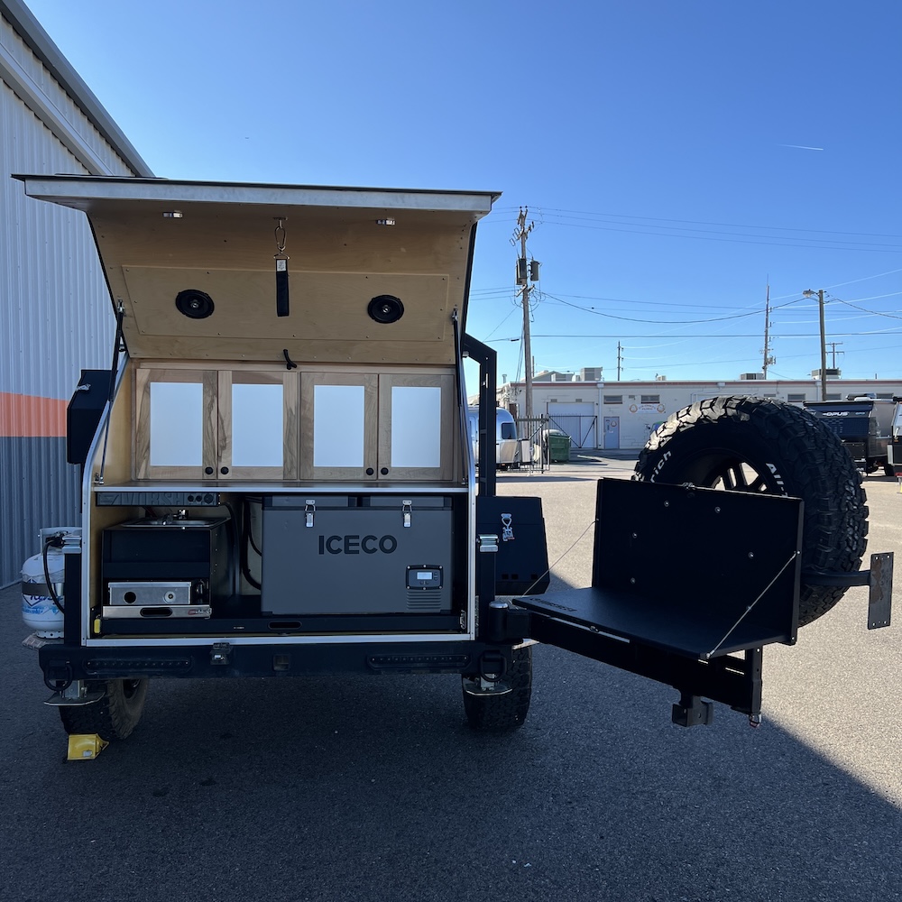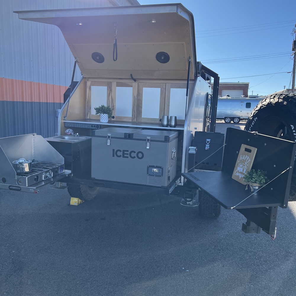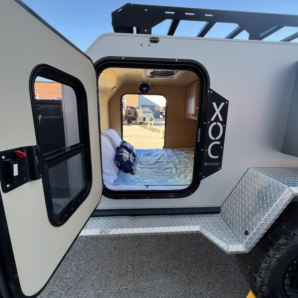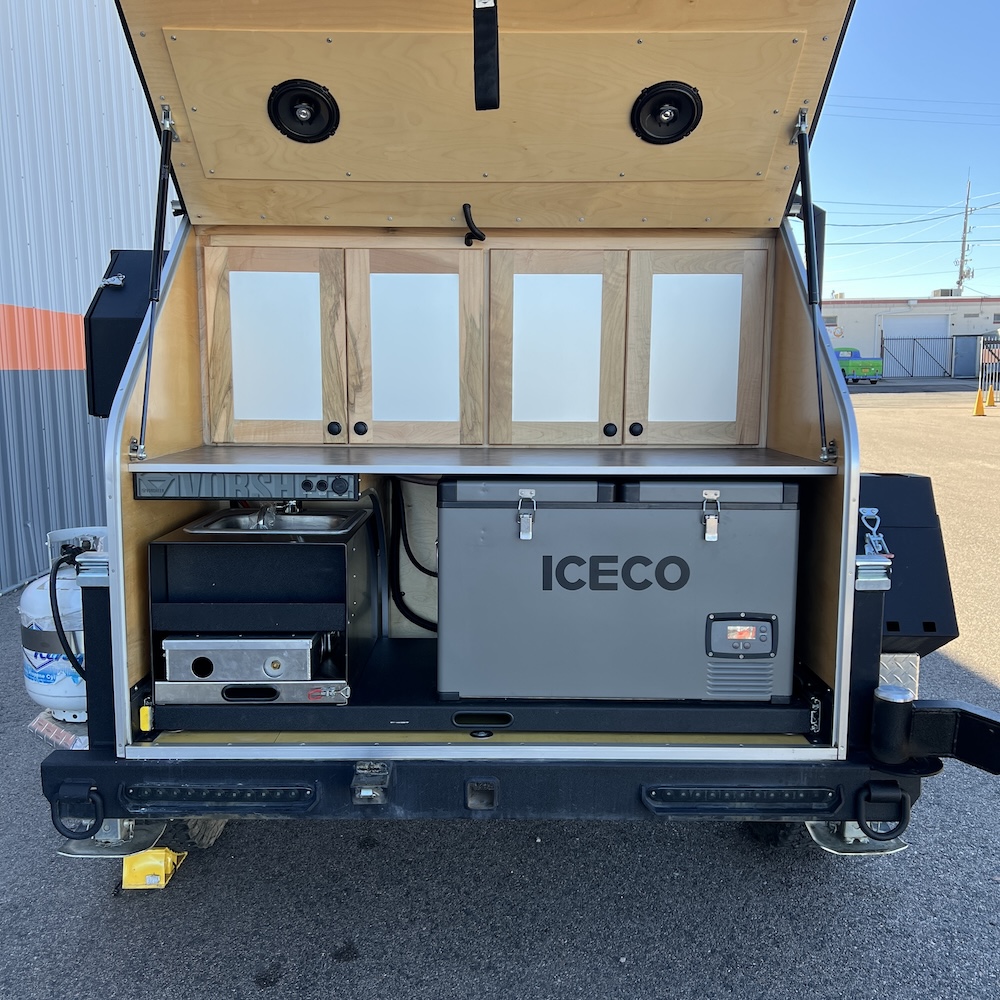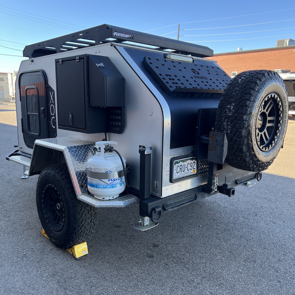 The Vorsheer XOC is an extreme overland camper designed to be used off the beaten path. It has 33″ off-road tires and an impressive 23″ of free ground clearance. The steel and aluminum components are sandblasted and powder-coated to maximize corrosion resistance. Inside, the 15′ trailer is finished in handcrafted solid Baltic birch attached to the laser-cut, CNC-bent, TIG-welded aluminum frame.