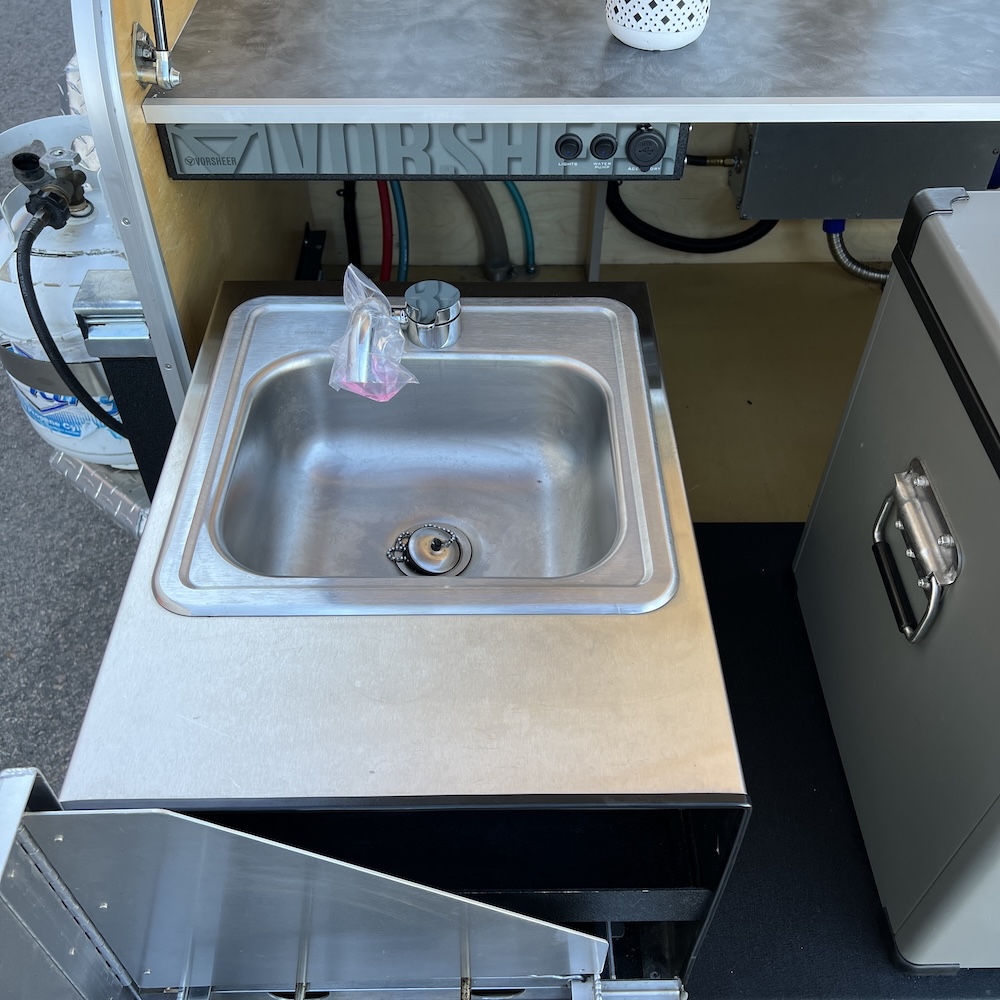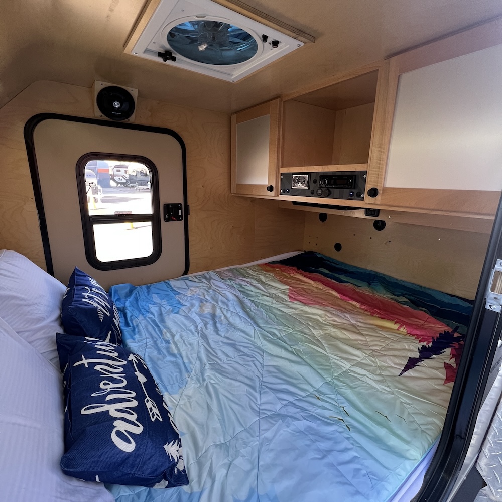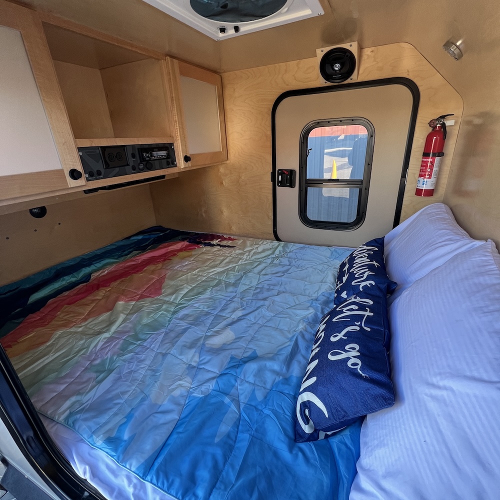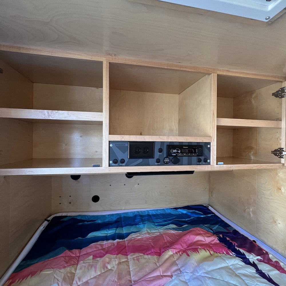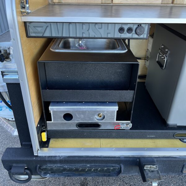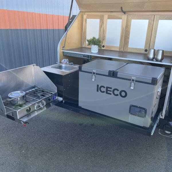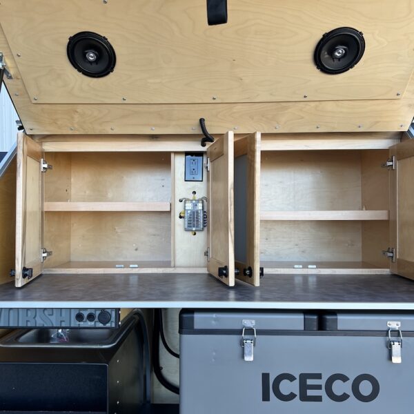 The Vorsheer XOC is an extreme overland camper designed to be used off the beaten path. It has 33″ off-road tires and an impressive 23″ of free ground clearance. The steel and aluminum components are sandblasted and powder-coated to maximize corrosion resistance. Inside, the 15′ trailer is finished in handcrafted solid Baltic birch attached to the laser-cut, CNC-bent, TIG-welded aluminum frame.
