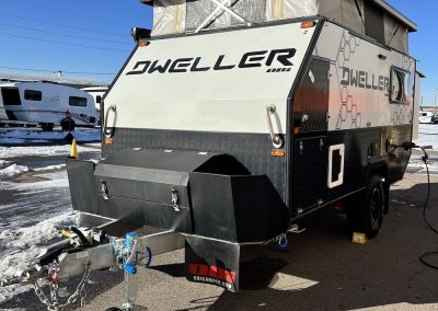 We clean the inside and outside, dump and rinse the holding tanks, and fill the propane for you on your return.